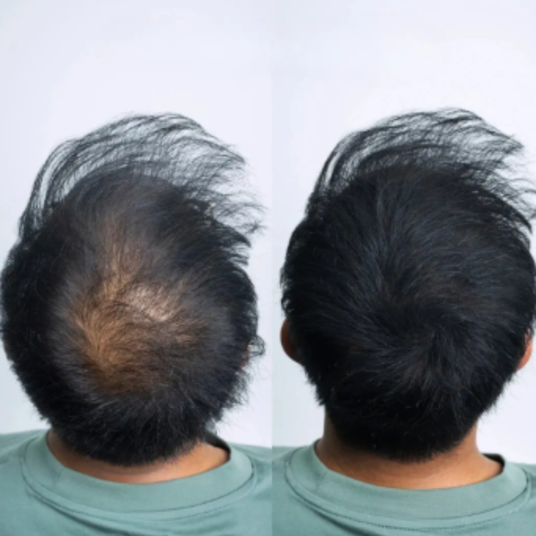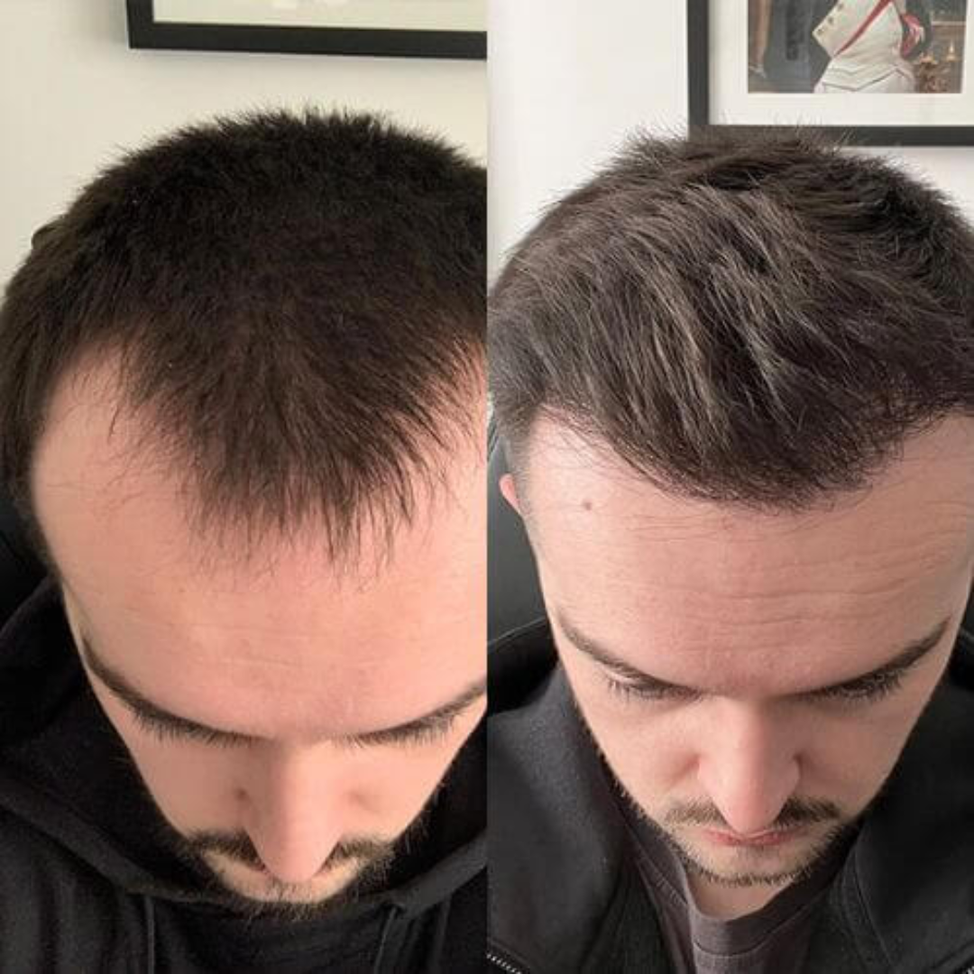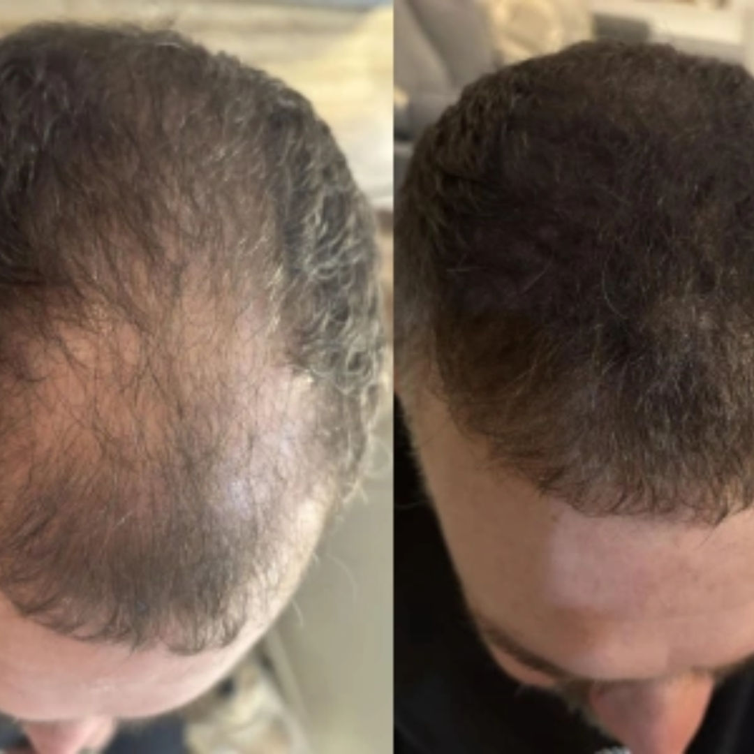 Mesmo em áreas que parecem completamente calvas, ainda existem pelos ultrafinos e claros, quase invisíveis a olho nu. Os micropigmentos avançados da Apex Hair se unem a esses minúsculos fios, preenchendo falhas e restaurando a aparência do volume natural. É por isso que você obtém uma cobertura impecável, mesmo em estágios mais avançados de afinamento.