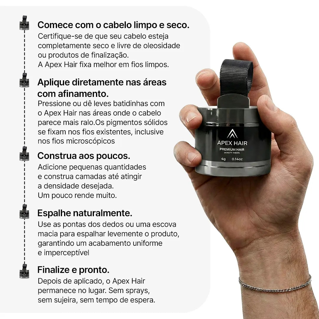 - Aplique o Apex Hair na área desejada (Cabelo ou Barba)